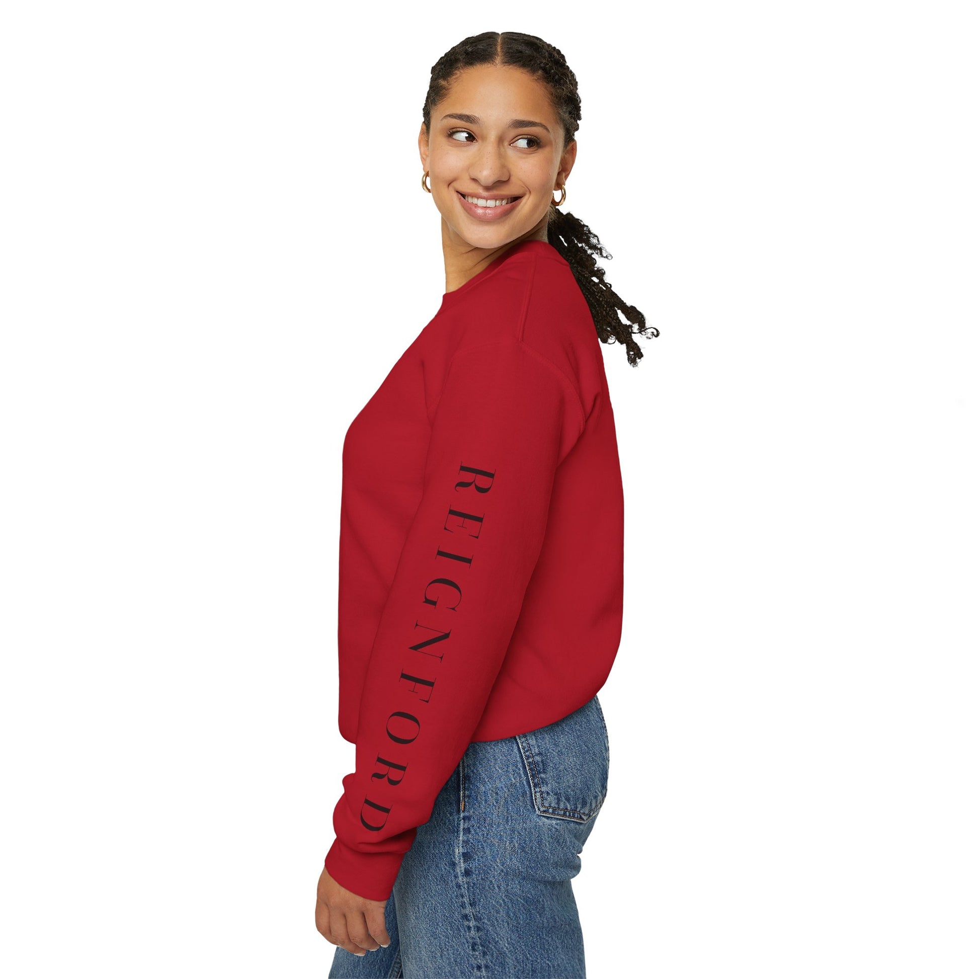 The Reignford Signature Crewneck Sweatshirt is a timeless essential designed for everyday wear with elevated branding. Featuring REIGNFORD along the left sleeve and the Reignford icon logo subtly placed on the eight chest, this piece balances bold identity with refined restraint.